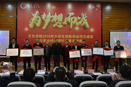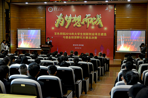 12月30日上午,我校2016年大學(xué)生創(chuàng)新創(chuàng)業(yè)項(xiàng)目遴選與基金投資孵化大賽總決賽在澄碧校區(qū)公共實(shí)驗(yàn)中心報(bào)告廳隆重舉行。學(xué)校領(lǐng)導(dǎo)金長義、徐魁峰、羅志發(fā),廣西中意達(dá)電氣工程有限公司董事長王國端、總經(jīng)理莫永,環(huán)球集團(tuán)董事長林愛國,南寧培育圖書有限責(zé)任公司董事長劉立新,廣西教苑圖書有限公司總經(jīng)理張琦,深圳國泰安教育技術(shù)股份有限公司昆明泛亞風(fēng)險(xiǎn)投資研究院執(zhí)行院長鮮于鈞,杭州貝騰科技有限公司廣西區(qū)域負(fù)責(zé)人方能,百色市平速辦公設(shè)備有限公司總經(jīng)理付紅亮,百色市百晟廣告策劃有限公司總經(jīng)理黃志明等企業(yè)家出席決賽開幕式,我校各職能部門、各二級學(xué)院師生到現(xiàn)場觀看了比賽。副校長徐魁峰、羅志發(fā),教務(wù)處處長蘭翠玲以及到會(huì)企業(yè)家擔(dān)任了總決賽評委。 校長金長義在開幕式上致辭,向長期以來關(guān)心、支持我校發(fā)展的各企業(yè)代表及社會(huì)各界人士表示衷心的感謝。金校長表示,我校近年來一直響應(yīng)國家“雙創(chuàng)”號召,積極摸索地方應(yīng)用型本科高校創(chuàng)新創(chuàng)業(yè)教育特色道路,探索出校企合作協(xié)同育人的創(chuàng)新創(chuàng)業(yè)教育體系。金校長認(rèn)為,各企業(yè)在我校成立“百色學(xué)院創(chuàng)新創(chuàng)業(yè)公益基金”,將促使我校創(chuàng)新創(chuàng)業(yè)教育特色更加鮮明,學(xué)生們的創(chuàng)新創(chuàng)業(yè)道路更加寬廣。希望全校教師以大賽為契機(jī),做好創(chuàng)新創(chuàng)業(yè)教育工作,培育更多創(chuàng)新創(chuàng)業(yè)人才;全校同學(xué)以大賽為平臺,啟迪自身智慧,開拓視野,互相交流學(xué)習(xí),練就創(chuàng)新創(chuàng)業(yè)本領(lǐng)。 莫永總經(jīng)理代表企業(yè)致辭,希望同學(xué)們通過這次大賽,充分展示自己的創(chuàng)業(yè)項(xiàng)目,提高自身的創(chuàng)新創(chuàng)業(yè)能力,抓住這個(gè)良好的發(fā)展機(jī)遇,成就自己的創(chuàng)業(yè)夢想。 開幕式還進(jìn)行了百色學(xué)院大學(xué)生創(chuàng)新創(chuàng)業(yè)公益基金揭牌儀式,該基金以前文各企業(yè)名稱命名,基金規(guī)模達(dá)到150萬元,主要用于我校師生開展創(chuàng)新創(chuàng)業(yè)活動(dòng)及大賽項(xiàng)目孵化,有效解決了大學(xué)生創(chuàng)業(yè)初期啟動(dòng)資金難的問題,也使我校校企合作、協(xié)同育人得到進(jìn)一步升華。 在隨后開始的總決賽上,17組參賽選手結(jié)合PPT,從企業(yè)概述、項(xiàng)目展望、風(fēng)險(xiǎn)因素、投資回報(bào)、組織管理、財(cái)務(wù)預(yù)測等方面進(jìn)行了全面介紹,激情洋溢地闡述了團(tuán)隊(duì)產(chǎn)品及經(jīng)營模式的創(chuàng)新亮點(diǎn)與創(chuàng)業(yè)理念。評委們肯定了選手們的創(chuàng)業(yè)熱情,并結(jié)合參賽團(tuán)隊(duì)特色,給予他們求真務(wù)實(shí)的可行性建議和指導(dǎo)。尤其是企業(yè)家評委們對項(xiàng)目的分析點(diǎn)評深具市場參考價(jià)值,也對我校大學(xué)生提出了更高的挑戰(zhàn)及更深入的指導(dǎo)。經(jīng)過激烈角逐,“智慧家居”獲得一等獎(jiǎng)及20000元項(xiàng)目啟動(dòng)資金,艾普斯教育科技、Promise攝影工作室獲得二等獎(jiǎng)及各10000元項(xiàng)目啟動(dòng)資金,校園第一站特產(chǎn)等獲得三等獎(jiǎng)及各5000元項(xiàng)目啟動(dòng)資金;新一閣家教輔導(dǎo)中心等10支參賽隊(duì)伍獲得優(yōu)秀獎(jiǎng)及各1000元項(xiàng)目啟動(dòng)資金。 據(jù)悉,本次大賽由教務(wù)處主辦,中科創(chuàng)業(yè)學(xué)院承辦,于12月初開始,持續(xù)近一個(gè)月,報(bào)名初期總共收到91個(gè)創(chuàng)新創(chuàng)業(yè)項(xiàng)目計(jì)劃書,共800多名師生參與本次大賽。與去年同期相比參賽師生及項(xiàng)目數(shù)量均增加了約30%。 此次大賽為我校大學(xué)生創(chuàng)業(yè)提供了廣闊的平臺,賽前還通過培訓(xùn)使參賽學(xué)生參與創(chuàng)業(yè)實(shí)戰(zhàn)來增強(qiáng)創(chuàng)新意識與創(chuàng)意思維,培養(yǎng)創(chuàng)業(yè)精神、提高創(chuàng)業(yè)能力、提升創(chuàng)業(yè)素質(zhì),激發(fā)大學(xué)生的創(chuàng)業(yè)潛能和熱情,引導(dǎo)廣大師生積極參與自主創(chuàng)新,投身創(chuàng)業(yè)實(shí)踐,搭建好項(xiàng)目與資金的對接平臺,全面推進(jìn)了我校大學(xué)生創(chuàng)新創(chuàng)業(yè)工作。 |