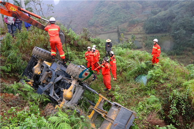 事故現(xiàn)場(chǎng) 12月28日14時(shí)55分,位于那坡縣那桑高速收費(fèi)站附近一鄉(xiāng)村道路上發(fā)生交通事故,一人被困。那坡中隊(duì)接到報(bào)警后,那坡縣消防中隊(duì)接到百色市消防支隊(duì)指揮中心調(diào)度后立即出動(dòng)一個(gè)搶險(xiǎn)救援編隊(duì)前往事故現(xiàn)場(chǎng)處置。 緊張營救 15時(shí)20分,救援人員到達(dá)現(xiàn)場(chǎng),120醫(yī)護(hù)人員已經(jīng)到達(dá)現(xiàn)場(chǎng)。現(xiàn)場(chǎng)發(fā)現(xiàn),一輛小型鏟車側(cè)翻在距路面4米高的地里,鏟車四輪朝天,駕駛室已被壓得嚴(yán)重變形,駕駛員就被卡在車內(nèi)動(dòng)彈不得并經(jīng)醫(yī)護(hù)人員確認(rèn)已無生命跡象。指揮員立即下達(dá)救援指令,警戒人員負(fù)責(zé)現(xiàn)場(chǎng)警戒,救援小組迅速利用破拆工具嘗試破拆把被困人員救出,但由于鏟車自身過重呈傾斜狀態(tài),指揮員立即同現(xiàn)場(chǎng)負(fù)責(zé)人協(xié)調(diào),借助旁邊的一臺(tái)勾機(jī)協(xié)助將事故鏟車輕微抬起并固定好位置確保不會(huì)發(fā)生二次事故后立即展開實(shí)施破拆救助。經(jīng)過20分鐘的緊張救援,被困人員被救出并交于現(xiàn)場(chǎng)醫(yī)護(hù)人員。 抬出尸體該起事故致一人遇難。目前,事故具體原因正由相關(guān)部門調(diào)查當(dāng)中。消防部門提示:廣大駕駛員陰雨天氣謹(jǐn)慎駕駛,確保交通安全。 |