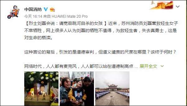 ![]() 據@中國消防 消息,近來,蘇州消防員劉磊營救輕生女子不幸犧牲,網上很多人認為劉磊的犧牲不值得,為救輕生者,失去真勇士,這是對生命的褻瀆。 這種言論的背后,引發(fā)的是道德審判,但道義譴責的尺度在哪里?該終于何時? 網絡時代,人人都有麥克風,人人都可以站在道德制高點,高舉正義、公平的旗子對他人的思想、行為進行評判。但當網民脫離虛擬網絡,在錯綜復雜的現實世界身臨其境時,是否也會犯下曾經被自己在網上鄙視的錯誤? ![]() ![]() ![]() 劉磊在跳下水營救落水女子的那一刻,他肯定不會考慮應不應該、值不值得,只因落水者的名字叫群眾,而消防隊員的使命就是有警必出、聞警即動,奮戰(zhàn)在人民群眾最需要的地方。這就是劉磊的選擇,一名消防員的選擇,也是消防救援隊伍千千萬萬指戰(zhàn)員的選擇。這是對使命的信仰,這種信仰從來不會因為犧牲而放棄沖鋒!就像電影《救火英雄》中說的那樣:“我們救的不是火,是人,是生命。我很清楚指令,也明白做消防員,不該一命換一命。我們只是希望,能救一個是一個。” 年輕的英雄劉磊永遠離開了我們,像一只響箭,一往無前的出征,讓生命與使命同行。他的生命無價,他為群眾獻身、為使命獻身的壯舉無價。如今,斯人已逝,世人應將他的英名永傳,讓人性關懷有更多空間,而不是做無謂的價值比較。 落水女孩,也請你放下包袱,與過往道別,勇敢、積極的生活下去,黎明之際仍是黑暗,堅強的信念會讓你等到光明,無論生命有多灰暗,請?zhí)ь^看看天空中那抹靚麗的“火焰藍”!犧牲的消防員劉磊他會說,請珍惜我用生命換來的生機。 惟愿逝者安息,生者安康。 |