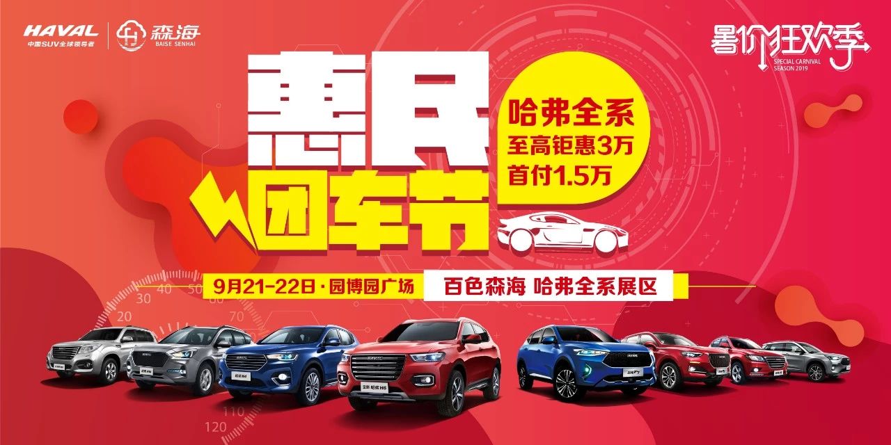 百色惠民車展,金秋鉅惠獻(xiàn)禮 如果您也想擁有一臺屬于自己的愛車 如果您還想享受一場免費(fèi)逛車展活動 如果您期望用最少的鈔票買心意愛車 如果您…… 只要您敢想,就來這兒…… 9月21-22日 百色園博園廣場(東合橋頭) 百色第六屆惠民團(tuán)車節(jié) 金秋車展鉅惠,哈弗全城獻(xiàn)禮 百色森海哈弗全系車型展區(qū) 哈弗全系車型,特批政策讓利 購車即享多重禮 此次活動中,哈弗旗下多款明星車型全面出擊,其中哈弗H6系列享受至高30,000元鉅惠,M6最低只需要6.6萬元就能帶回家。金秋九月,品質(zhì)哈弗鉅惠不停,繼續(xù)以誠意回饋消費(fèi)者,打造不容錯過的購車黃金季。 作為主力銷售車型,在此次鉅惠活動期間購買19款全新哈弗H6,可享受包含現(xiàn)金促銷5000元,置換補(bǔ)貼至高6000元,金融貼息至高9000元在內(nèi)的至高20,000元綜合鉅惠。19款全新哈弗H6新增哈弗Hi-Life車載系統(tǒng),為本就具備高品質(zhì)口碑的全新哈弗H6實力賦能。此外,對于選購哈弗H6運(yùn)動版18款及國六的消費(fèi)者而言,則至高可享受到現(xiàn)金促銷20,000元,至高置換補(bǔ)貼6000元,金融貼息至高4000元的至高30,000元綜合至高鉅惠,實在是購車的絕佳時機(jī)。 同時,為了迎接哈弗H6單車銷量即將突破300萬的里程碑時刻,哈弗也將在成都車展推出全新哈弗H6鉑金版車型,購車可享試駕禮、訂單禮、現(xiàn)金禮、置換禮、金融禮、智聯(lián)禮在內(nèi)6重豪禮,綜合鉅惠高達(dá)20,000元,并有36期0息的購車優(yōu)惠,基礎(chǔ)服務(wù)終身免費(fèi),娛樂服務(wù)、尊享服務(wù)三年免費(fèi),不限流量的超值豪禮,試駕、訂車還有試駕禮品及訂車禮包,為消費(fèi)者選擇哈弗提供更好的理由,選購最佳時機(jī)不容錯過。 哈弗的另一款明星車型哈弗F7同樣為消費(fèi)者準(zhǔn)備了誘人的優(yōu)惠政策;顒悠趦(nèi)用戶可享受現(xiàn)金促銷5000元,置換補(bǔ)貼至高6000元,金融貼息至高9000元在內(nèi)的至高20,000元綜合鉅惠。哈弗F7一經(jīng)問世就展現(xiàn)出了“爆款”潛力,憑借著太空科技美學(xué)外觀、品質(zhì)感與科技感兼具的內(nèi)飾、“雙十佳”黃金動力組合,迅速吸引了大批年輕擁躉。 作為哈弗旗下的一款全球車型,哈弗F7可謂紅透了海內(nèi)外。在國內(nèi),哈弗F7長期占據(jù)SUV熱銷榜單,迅速成為SUV中的“爆款”;在海外,哈弗F7實現(xiàn)了全工藝鏈的海外本土化生產(chǎn),助力哈弗在俄的7月銷量勁增356%,成為俄羅斯汽車市場中國汽車銷量明星產(chǎn)品。 哈弗F7 2020款在近期舉辦的成都車展亮相,采用全新升級的智能網(wǎng)聯(lián)系統(tǒng),并增加了L2級別自動駕駛與“AI智能”輔助系統(tǒng),融合智能、動感、科技于一身,為用戶帶來超出期待的全新體驗。 哈弗F7定位AI智能網(wǎng)聯(lián)SUV,由外至內(nèi)都彰顯了十足的時尚科技風(fēng)范。炫酷大氣的太空科技美學(xué)外觀,加上品質(zhì)感、科技感兼具的內(nèi)飾,吸引了大批時尚青年。哈弗F7擁有囊括超級語境識別、在線娛樂、車聯(lián)網(wǎng)等功能在內(nèi)的強(qiáng)大智能網(wǎng)聯(lián)功能,再結(jié)合全面周到的智能安全配置,為用戶提供了卓越的AI智能出行體驗。哈弗F7搭載了1.5GDIT/2.0GDIT+7DCT“雙十佳”黃金動力組合,加上大師級水準(zhǔn)的專屬底盤調(diào)校,實現(xiàn)了整車高性能與舒適性的完美結(jié)合。其四驅(qū)系統(tǒng)和6種駕駛模式,充分保證了其面對各種路況的通過能力。 轎跑SUV哈弗F7x可享受置換補(bǔ)貼至高6000元,金融貼息至高9000元,共計至高15000元綜合鉅惠。哈弗F7x汲取了“天際線穹頂”的設(shè)計靈感,采用了溜背運(yùn)動轎跑設(shè)計,整體造型動感流暢且張力十足,滿足了年輕人追求個性、時尚等用車需求。而“14萬價位搭載L2級自動駕駛技術(shù)的轎跑SUV”及“15萬價位百公里加速進(jìn)入7秒?yún)^(qū)間的轎跑SUV”的突出標(biāo)簽,更是展現(xiàn)出了哈弗F7x在科技、性能方面的非凡實力以及超高的性價比。 哈弗F5國潮版可享受包含現(xiàn)金促銷4000元,置換補(bǔ)貼至高4000元,金融貼息至高6500元在內(nèi)的至高14500元綜合鉅惠。哈弗F5定位“潮派智聯(lián)SUV”,無論是“尖鋒Battle美學(xué)”設(shè)計語言帶來的運(yùn)動范兒,還是先進(jìn)的智能互聯(lián)科技打造的專屬無界互聯(lián)出行體驗,以及“1.5GDIT+7DCT”黃金組合和專業(yè)運(yùn)動SUV底盤提供的澎湃動力和隨心駕控體驗,都完美符合當(dāng)前年輕人態(tài)度為先、表達(dá)為先、感受為先的消費(fèi)心理,為國潮青年打造全新的用車生活。 定位“8萬級高能智聯(lián)SUV”的哈弗H4智聯(lián)版,此次活動可享受現(xiàn)金促銷4000元,置換補(bǔ)貼至高4000元,金融貼息至高6500元共計至高14,500元綜合鉅惠。在今年成都車展,哈弗也將帶來更加符合年輕人審美、動感需求全面升級的哈弗H4 Pro,凸顯時尚質(zhì)感的艾爾斯灰專屬車身色,搭配更顯運(yùn)動魅力的六棱傾橙進(jìn)氣格柵、日珥后視鏡等橙紅套裝,強(qiáng)烈的“冰與火”撞色風(fēng)格帶來極強(qiáng)的視覺沖擊力,全面升級值得期待。據(jù)悉,新車將在成都車展開啟預(yù)售,購車更可享多重驚喜大禮,趕緊下單訂購,超值鉅惠豪禮一觸即達(dá)。 此外,購買哈弗H9-2020款的用戶,可享24期0利率的超值金融貼息禮,用哈弗H9置換H9-2020款更可享受至高15000元/