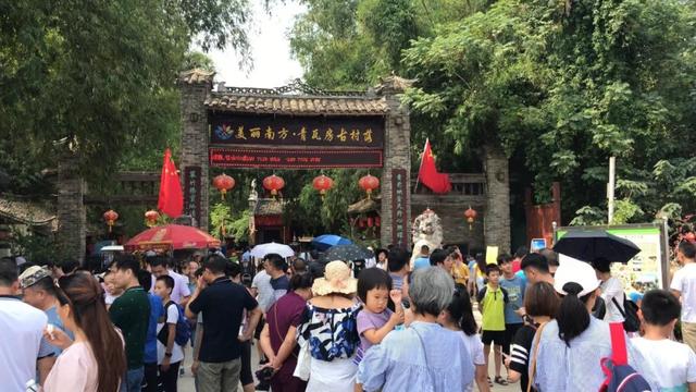 據(jù)介紹,10月3日上午10時許,美麗南方·青瓦房古村落前的停車場就停滿了車。中午11時~12時左右,記者看到景區(qū)道路上基本都是參觀人流;下午5時,一些游樂體驗區(qū)仍排著長龍。截止到下午6時,景區(qū)共接待游客近7000人。