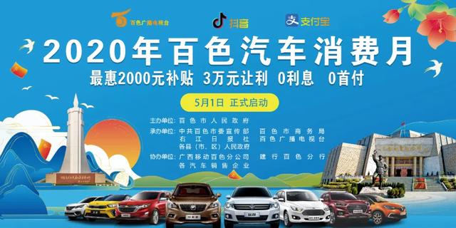 5月1日至30日,百色市人民政府主辦百色汽車消費月活動,并于5月1日上午10:30,通過百色廣播電視臺、移動和商務(wù)平臺、抖音等平臺現(xiàn)場直播啟動儀式,市政府常務(wù)副市長將化身主播拉開活動月序幕,推出特惠車限時秒殺等多重驚喜為活動助興;顒悠陂g,購車消費者最高可享2000元補(bǔ)貼、10萬元讓利、2000元油卡、9999公里充電卡、0首付、0利息等多重疊加優(yōu)惠,全市汽車銷售企業(yè)全部就地參加活動。