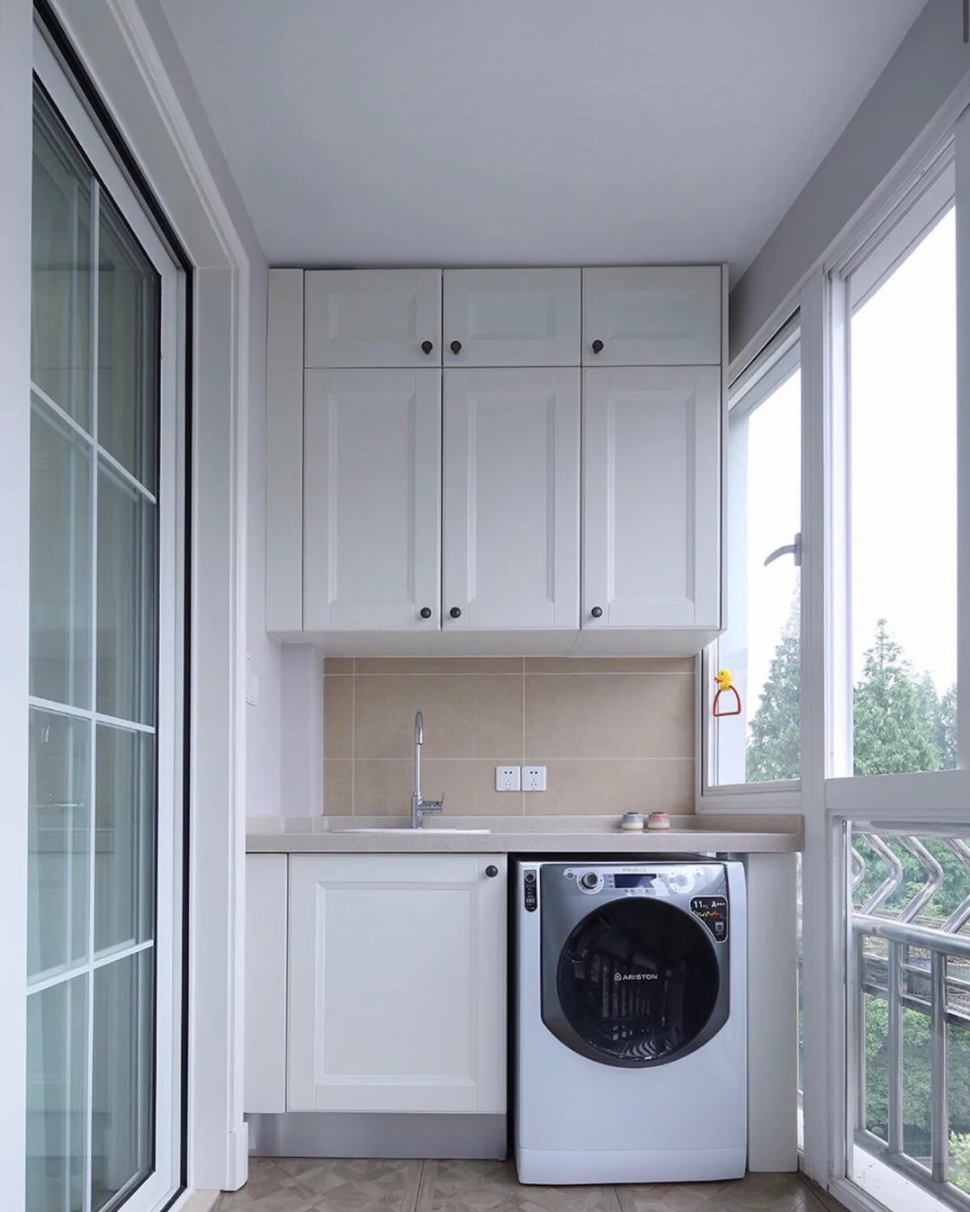 對于陽臺來說,通常是一邊洗衣柜,另一邊就是陽臺柜,這也是很常見的設計,有著很好的實用性。